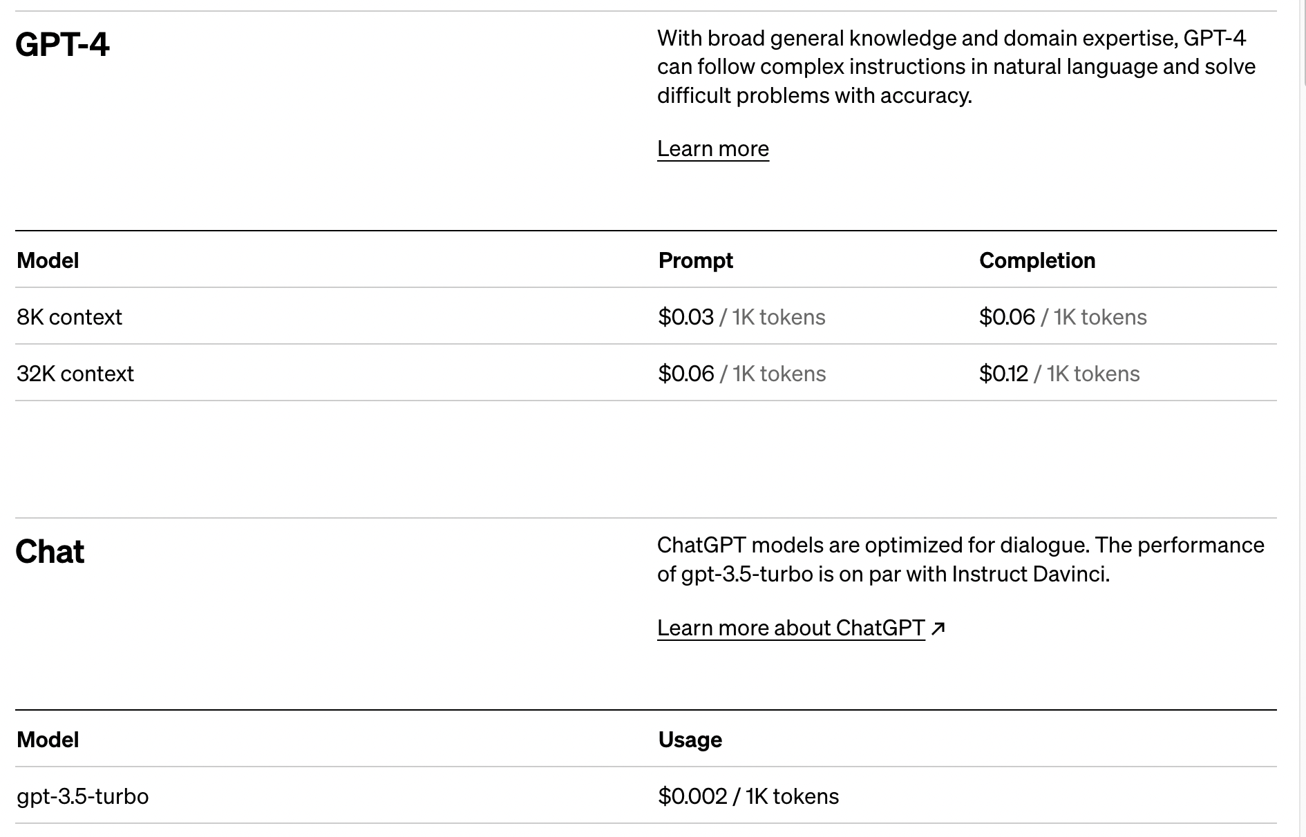 가격은 아래와 같은데 1000토큰은 영어로 약 750단어다.