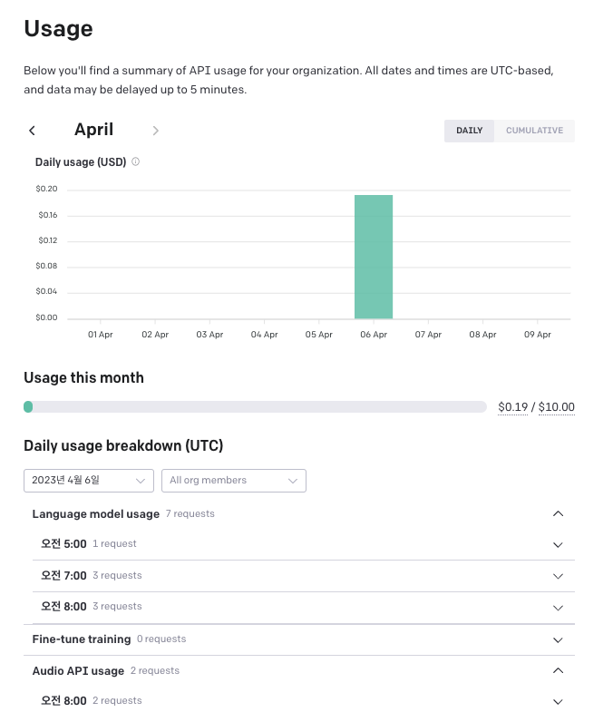 나중에 사용하고 나면 몇번 request를 보냈는지, 가격은 얼마나 나왔는지도 상세히 확인할 수 있다